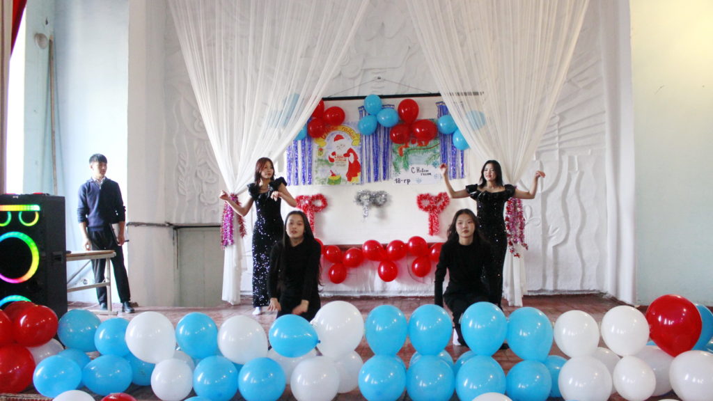 Майрамдык кечеде окуучулар тарабынан даярдалган кызыктуу концерттик программа көрсөтүлүп, ыр-бийлер, сценкалар жана музыкалык номерлер менен коштолду. Ошондой эле Аяз ата менен Аяз кыз кечеге келип, катышуучуларга майрамдык маанай тартуулап, белектерин таратышты.